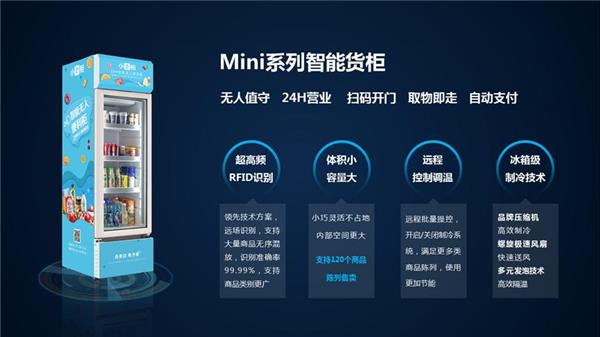 同样的投入资金,客户能买更多的Mini智能无人货柜和RFID标签,由于体积较小移动灵活,小卖柜Mini无人售货柜的进驻门槛更低,可选的点位更多,市场更大,区域内的密度也更大,整体补货、经营成本也更低,合作伙伴回本和盈利的周期更短。